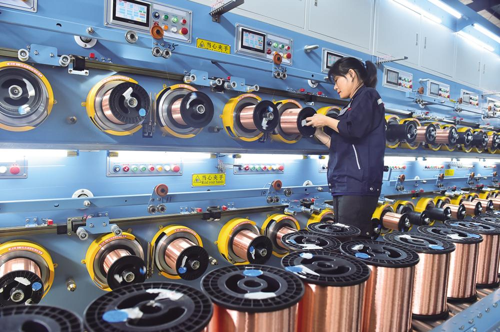 11月22日,江西鹰潭市钲旺科技有限公司生产车间,技术工人在生产线上作业。 近年来,江西鹰潭高新区以党建为引领,深入推进“一号改革工程”,全力优化营商环境,引进优秀人才,引入行业龙头企业,激励技术改造与创新,打造“智联小镇”物联网产业集群和铜基新材料“智造”产业集群,推动高新区经济高质量发展。2023年1-10月,鹰潭高新区新增技术企业43家,规上工业企业营业收入约800亿元,同比增长20%。 新华社记者 张善臣 摄