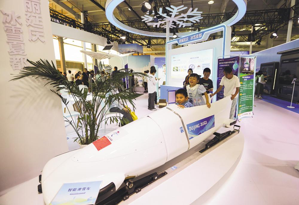 9月16日,在服贸会首钢园区,小朋友在“美丽延庆 冰雪夏都”展台参观体验。 当日,2024年中国国际服务贸易交易会在北京落下帷幕。新华社记者 邹广萍 摄