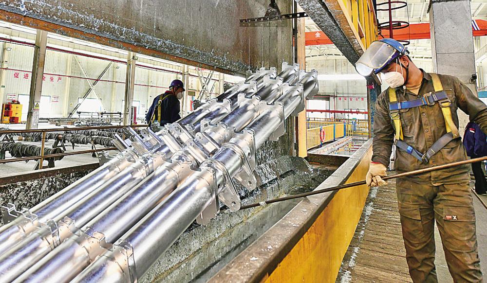 等离子切割机轰鸣作响,火花四溅,“繁星”点点在空中划出绚丽轨迹;镀锌车间内,工人们将组件送入镀锌池,经过一系列复杂工艺处理后,焕然一新的产品闪耀着坚韧与耐用的光芒;远处,一排排塔筒矗立,它们是新能源的“守护者”,也是青海工业力量的象征。