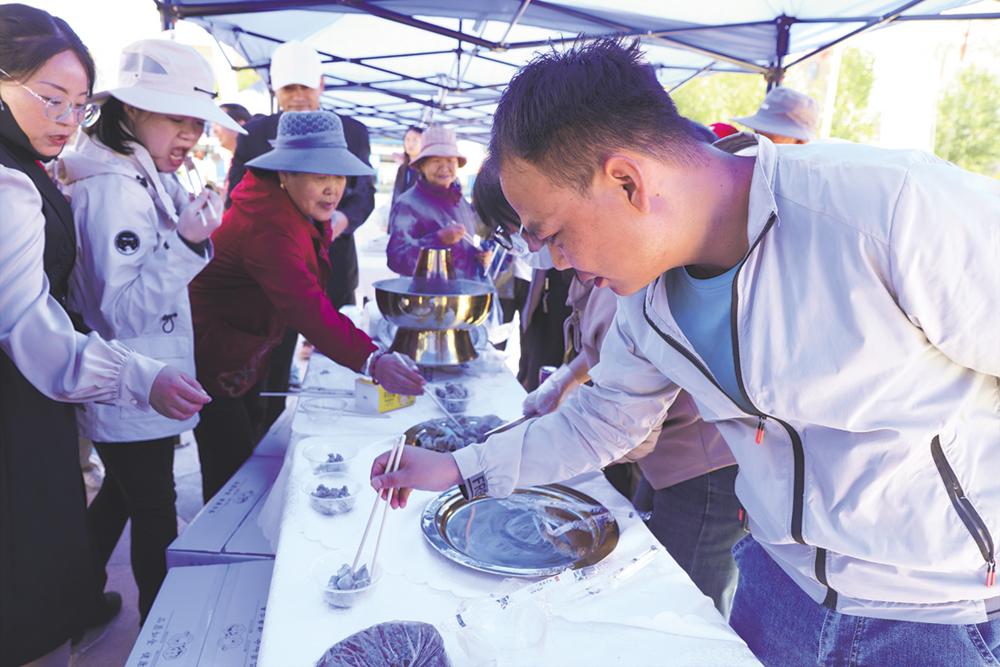 活动现场的马头琴齐奏《烈马追风》、舞蹈《唱支山歌给党听》、扇子舞《丰收中国》等一系列极具特色的民俗表演将活动现场的气氛推向高潮,充分展示我州农民朋友们在丰收季节里欢声笑语、载歌载舞的场景,展现了我州农业发展新成就、农民生活新气象、农村建设新面貌。现场的乡村美食评比、农牧业发展成果展、农机展、“柴达木优品+乡村传统艺术品”及非遗展示展演,还有多种海西名优农特产品齐亮相,吸引了群众驻足观看和品鉴。