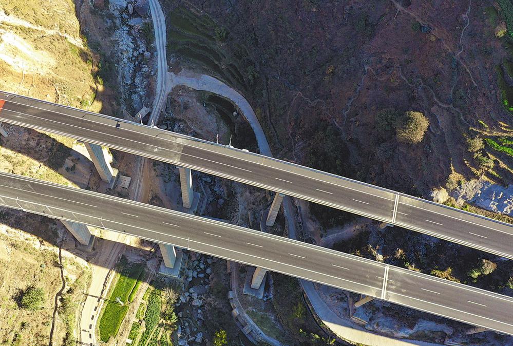 这是建成的云南华丽高速半岩子特大桥(2022年1月1日摄,无人机照片) 9月28日,全长150.8公里的云南华坪至丽江高速公路实现全线通车。该线路由中国建筑投资、建设、运营,全线设置互通式立交13处,服务区3处,停车区3处,采用双向四车道高速公路标准建设,设计时速80公里。 华丽高速全线通车后,结束了云南丽江与四川攀枝花两个相邻地区不通高速的历史,云南丽江至四川攀枝花的行车时间从原来的6个多小时缩短至2个多小时。新华社发(季楚 摄)