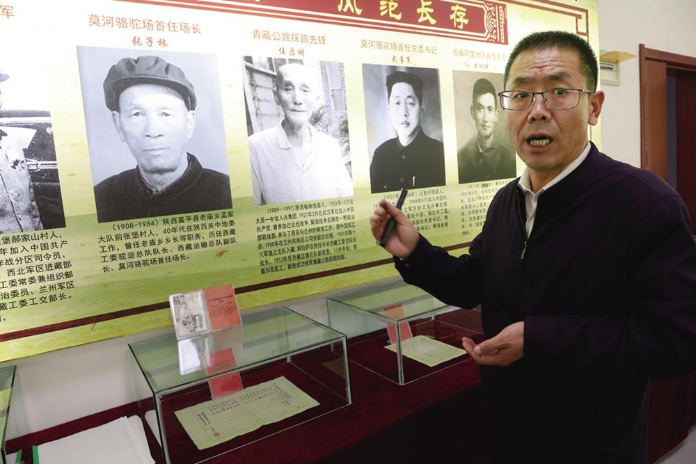 步入莫河青藏驼队历史博物馆,仿佛穿越时空,回到了那个艰苦卓绝的岁月。“莫河驼场,前身是1953年中共中央西北局组建的西藏运输总队,莫河驼场的驼工和驼队最早进藏可以追溯到1951年,1953年成立西藏运输总队,又运粮援藏,三次进藏后,骆驼损伤严重。运输物资时,每头骆驼驮上150公斤左右的面粉,分头向西藏进发。由于高原恶劣的气候环境,粮食运到拉萨时已消耗了近一半,这批2.8万峰进藏骆驼损失三分之二,驼工有30多人牺牲……”莫河青藏驼队历史博物馆馆长张存虎对“两路”精神的理解不断深化,讲解也越来越精彩,他如同精神火炬的传递者,让每一位听众都能深刻感受到“两路”精神的伟大力量。