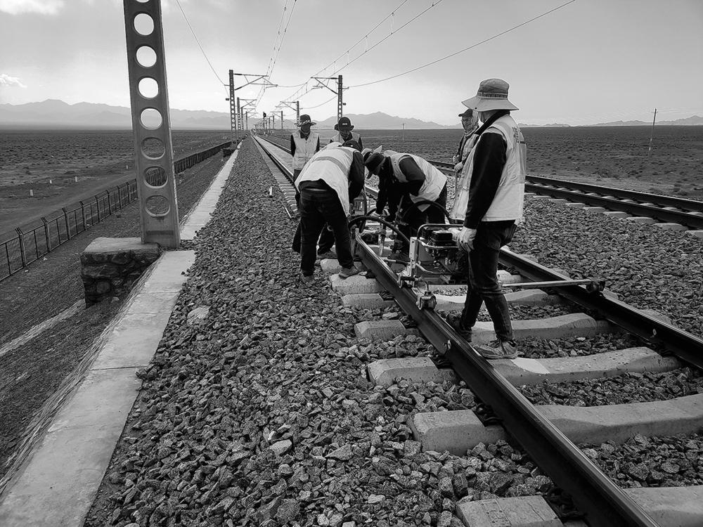 赛什腾山线路工区地处偏远,这里自然环境恶劣,风沙肆虐,昼夜温差极大,被人们称为“黑戈壁滩”。但这些职工们早已习惯了与这种环境为伴,国庆期间,他们依然忙碌在铁路线上,成为这片荒芜中独特的风景线。