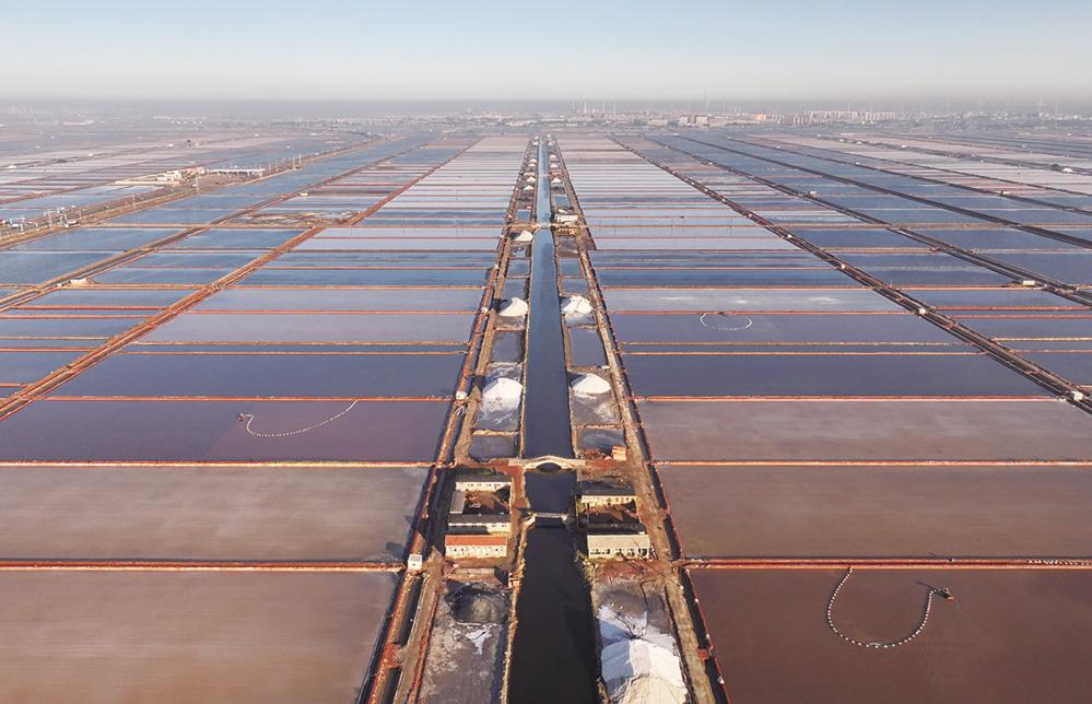 ▲ 10月16日,工人在河北省唐山市曹妃甸区南堡盐场操作机械设备收获秋盐(无人机照片)。 时下正值秋盐收获季,河北省唐山市曹妃甸区南堡盐场的工人利用晴好天气抢收秋盐,“百里盐池”呈现出一片繁忙景象。 据介绍,南堡盐场是我国长芦盐区海盐生产基地之一,占地35万亩,今年预计海盐总产量可达140万吨。新华社记者 杨世尧 摄