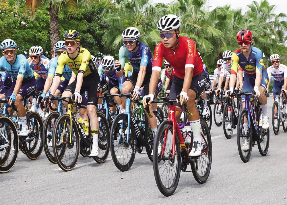 10月20日,中国国家队车手申煜涛(前)在比赛中出发。 当日,2024年环广西公路自行车世界巡回赛最后赛段第六赛段南宁城市赛段的比赛结束。本赛段竞赛距离134.3公里,设2个冲刺点、3个爬坡点。 新华社记者 金皓原 摄