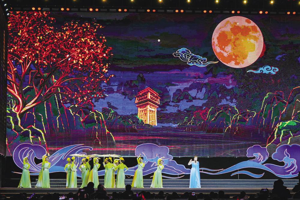 10月20日,演员在2024世界大河歌会上表演歌舞《巴山夜雨》。 10月20日,2024世界大河歌会在重庆市万州体育场举行,这也是第十五届中国长江三峡国际旅游节主题活动之一。 本届世界大河歌会以“让世界听到长江的声音 ”为主题,以长江流域特色的代表性经典曲目及歌咏大江大河的曲目为基调,通过传统与现代碰撞、国际与国内交融、经典名曲与新创作品的交流,形成集国际性、艺术性、互鉴性、交融性、观赏性、参与性于一体的歌唱盛会。 新华社记者 张子彧 摄