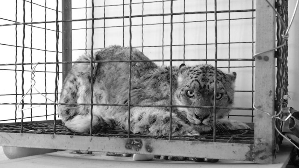 到达现场后,民警和林草局工作人员通过远距离观察,确定该动物为雪豹。仔细观察发现雪豹身体无明显外伤,疑似长时间未进食,身体较为虚弱。众人合力使用铁笼将雪豹转运至大柴旦行委公安局临时场所,进行投喂。同时,大柴旦行委公安局第一时间与青海野生动物救护繁育中心进行联系沟通,听取指导,对雪豹进行悉心观察和照顾。
