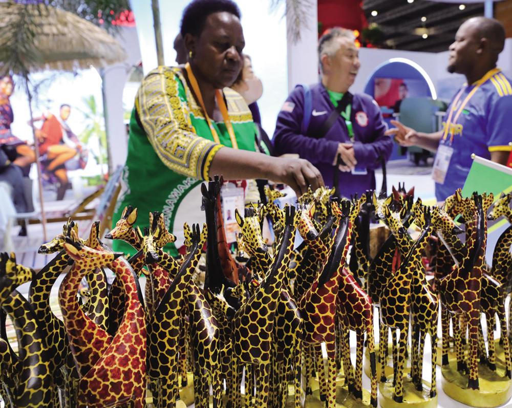 这是11月7日在第七届进博会国家展坦桑尼亚馆拍摄的木雕艺术品。 新华社记者 方喆 摄