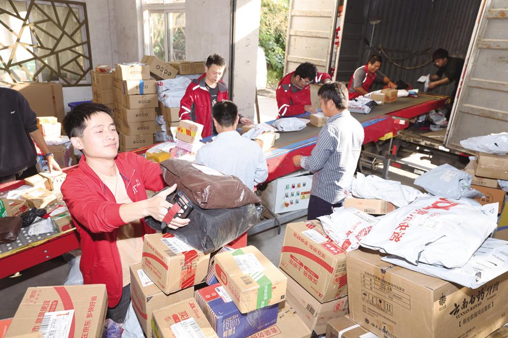 11月11日,工作人员在京东物流浙江省湖州市德清县乾元营业部分拣快递。 “双11”高峰来临,全国各地生产企业备足货源,电商、物流等相关的企业开足马力,加班加点,一片繁忙。新华社发(倪立芳 摄)