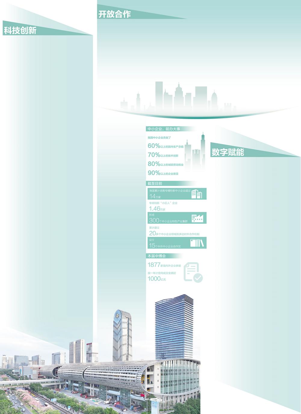 拥抱开放合作,新期待新愿景落地生根。近年来,中小企业出海意愿持续增强。中国中小企业发展促进中心数据显示,有62%的专精特新“小巨人”企业已开展国际化业务,另有18%的“小巨人”企业计划出海。本届中博会举办境外商务推介及对接等配套活动,推动境内外中小企业在强链补链延链方面凝心聚力,共同深化产业链供应链国际合作。
