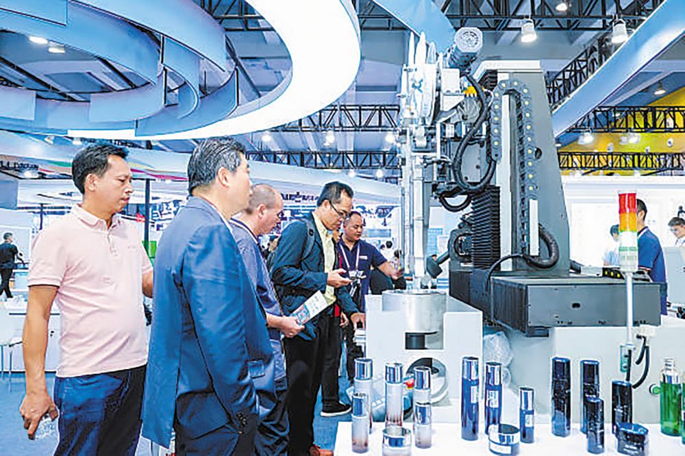一家自动化设备公司展台前,客商在观看展品。 中博会组委会 供图