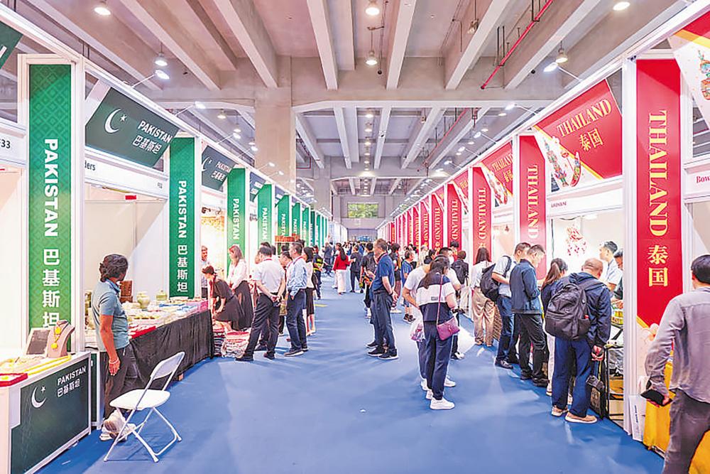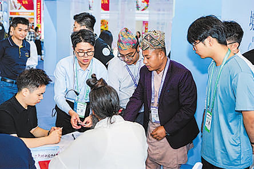 参展商与客商在埃及展区沟通洽谈。 中博会组委会 供图