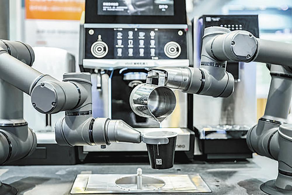 一款由数字化系统操控的智能咖啡拉花机器人。 黄泰茗 摄(影像中国)