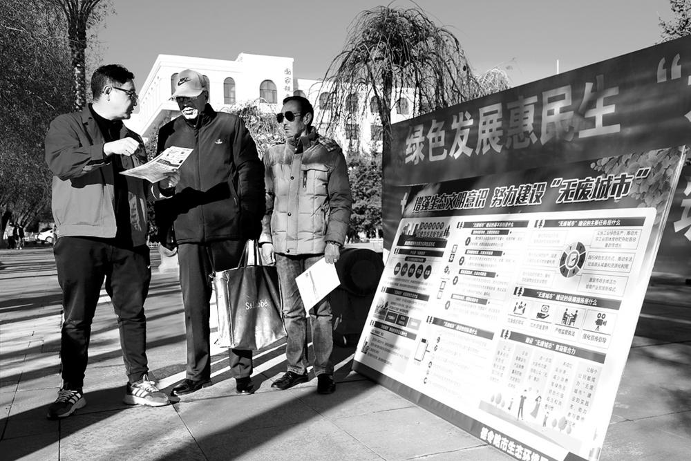 11月20日,州、德令哈市生态环境局等22家单位在德令哈市中心广场开展了以“绿色发展惠民‘无废城市’重在行动”为主题的宣传活动。通过摆放展板、悬挂横幅、发放倡议书等方式向群众讲解“无废城市”理念,呼吁广大市民人人争当“无废城市”建设的宣传者、践行者、推动者。 本报记者 查宝音 摄影报道