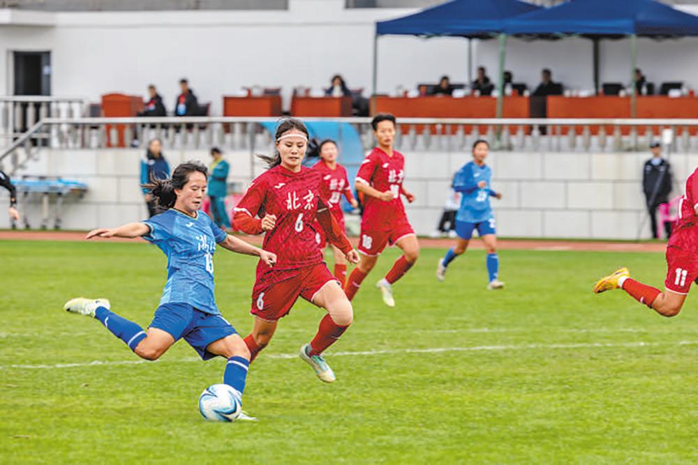 浙江队球员(左一)在女足比赛中进攻。 陶相安 许泽波 摄影报道