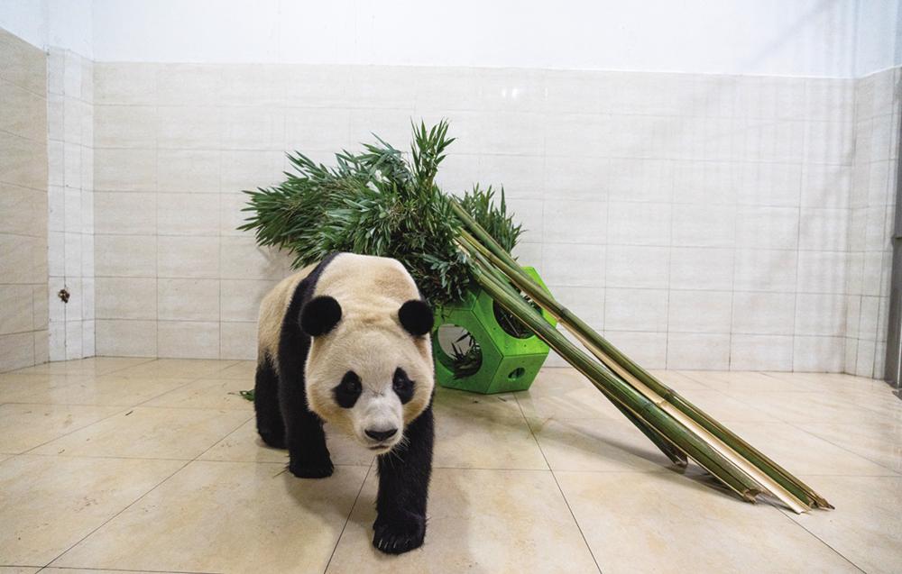 12月4日,大熊猫“福宝”在圈舍内散步。 12月3日,记者赶赴卧龙神树坪基地,独家现场探访大熊猫“福宝”。当天,有游客在中国大熊猫保护研究中心卧龙神树坪基地拍摄到大熊猫“福宝”进食时不断发抖抽搐,身体状况异常。中国大熊猫保护研究中心12月3日晚发布消息称,经饲养员和兽医初步检查,大熊猫“福宝”体态外观无异常,精神及食欲正常。 新华社记者 薛晨 摄