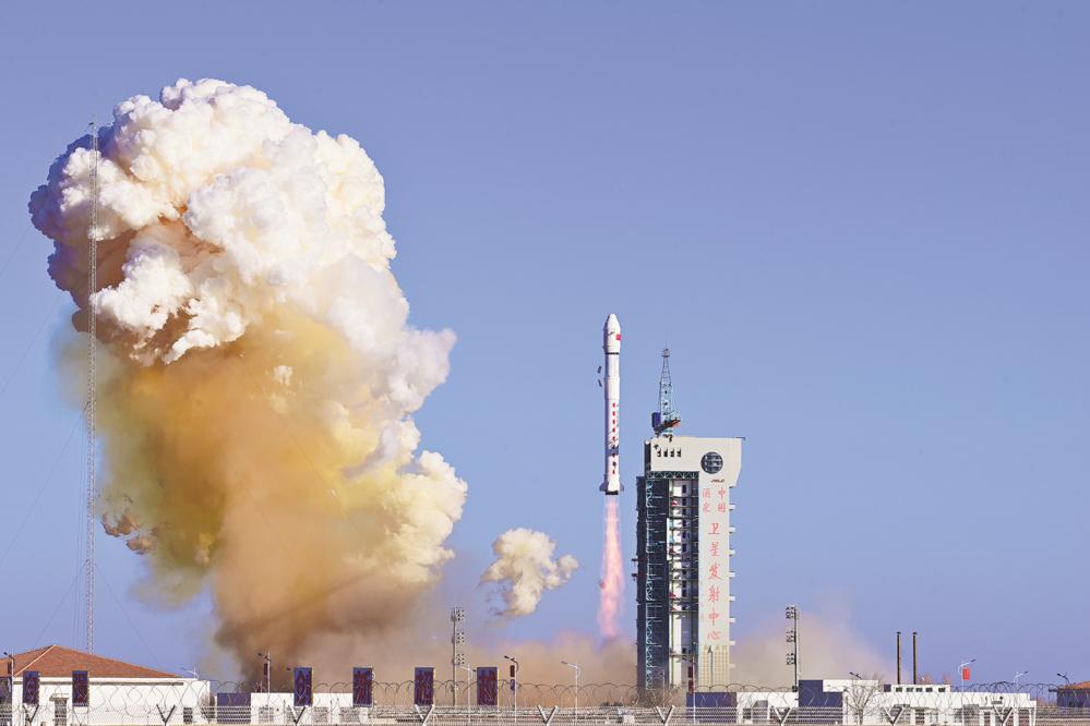 12月12日15时17分,我国在酒泉卫星发射中心使用长征二号丁运载火箭/远征三号上面级,成功将高速激光钻石星座试验系统发射升空,5颗卫星顺利进入预定轨道,发射任务获得圆满成功。新华社发(汪江波 摄)