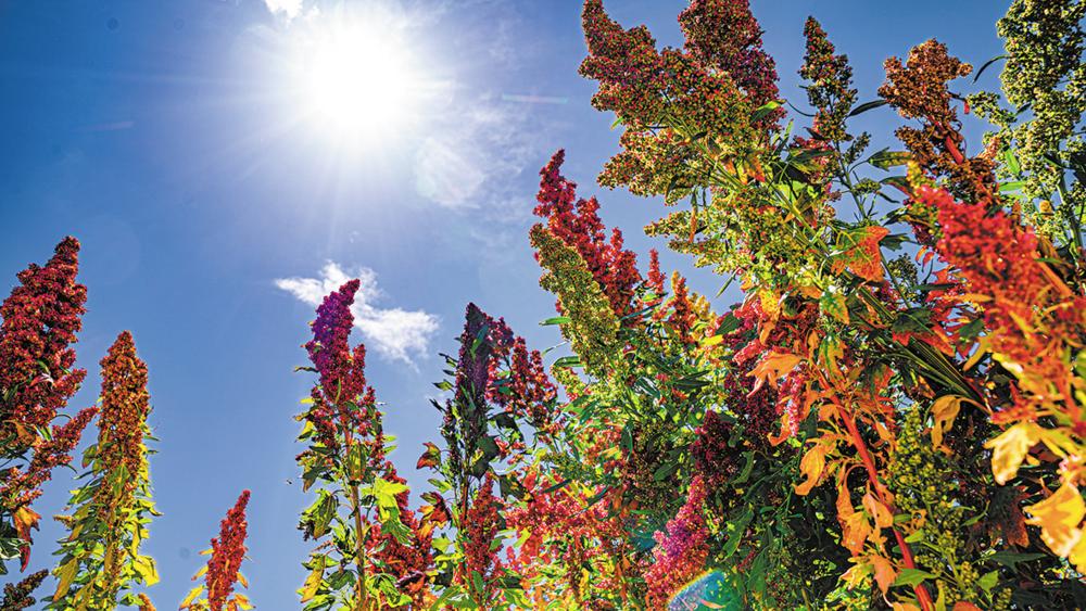 深秋,走进海西蒙古族藏族自治州柴达木藜麦产业协会种植的藜麦种质材料试验田、良种扩繁试验田、标准化种植示范田以及大面积高产田,放眼望去,簇簇藜麦籽粒粒饱满,不同品种的藜麦穗呈现出火红、金黄、紫红等鲜艳的色彩。