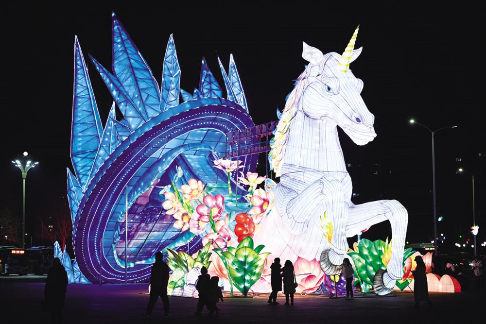 12月20日,游客在银川花博园山海灯会参观游览。 当日,首届银川花博园山海灯会在位于银川的中国花卉博览园举行。此次灯会以“大美银川 山海共舞”为主题,共展出百余组大型花灯作品。 新华社记者 王鹏 摄