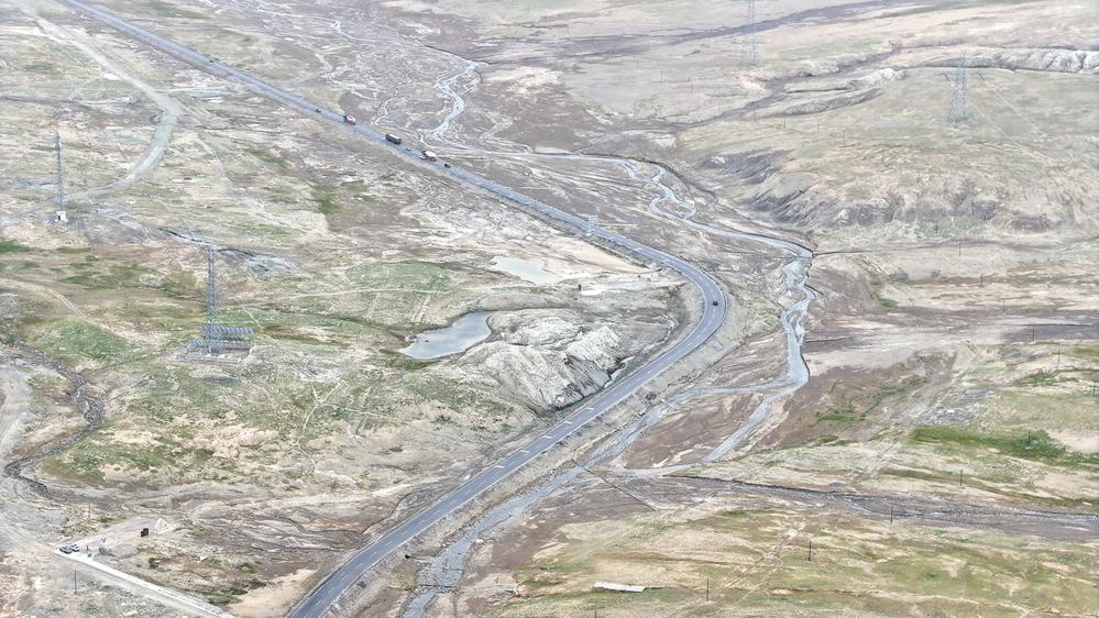 出了艾吉沟,进入一道曲折深邃的峡谷。峡谷流淌着一条湍急的河,是格尔木河的支流,河宽近百米。河水从崎岖峡谷流出,即便是最热的七八月,河水也是冰凉透骨,公路设计沿河穿出峡谷,筑路队员又开始了凿壁开路的战斗。有时队员需要站在冰冷的河水里,刺骨的凉意让人浑身发颤,队员分成几组,轮流下河,咬牙坚持,最终比预计时间提前7天完成施工任务。