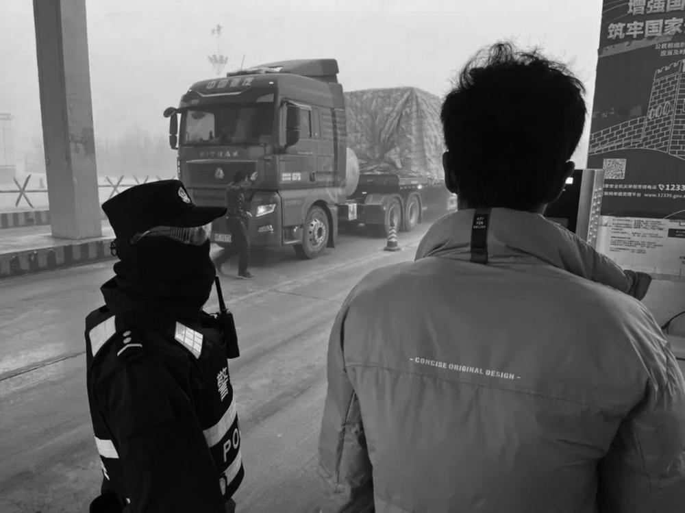 去年新入职的辅警胡梓杰装备齐整、站姿笔挺,紧盯着每一辆来往货车,从上海辞职到茫崖工作,他说,来到这里,才真正明白了什么是寂寞,什么是繁华。“在茫崖当警察,就像是人群中的逆行者,在孤独的地方守护身后的繁华。”他说。