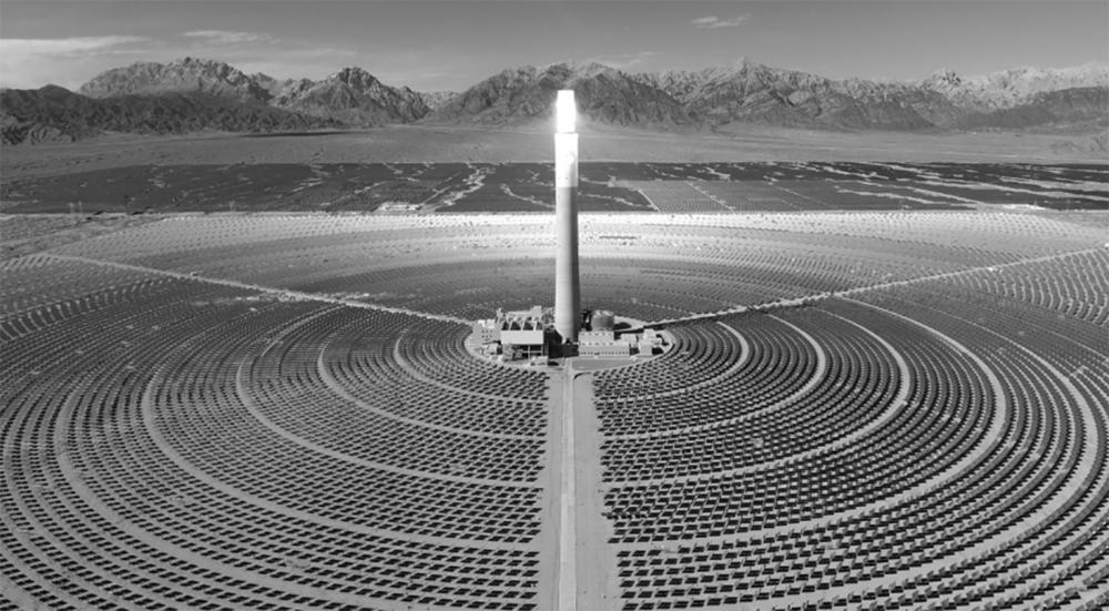 巍巍山脊上,风力发电“大风车”整齐排列,迎风旋转的叶片“吞风吐电”;