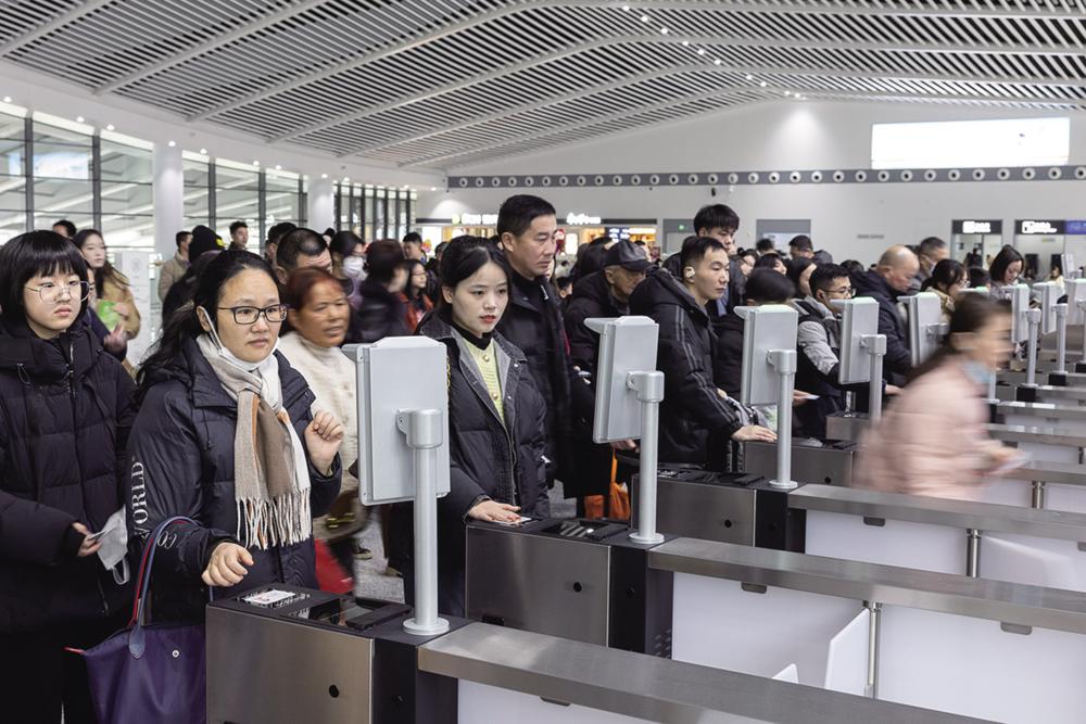 1月25日,旅客依次检票进入浙江省铁路湖州东站站台。 1月25日,春运迎来节前客流高峰。来自交通运输部数据显示,当日全社会跨区域人员流动量预计超2.7亿人次。 新华社发(伊凡 摄)