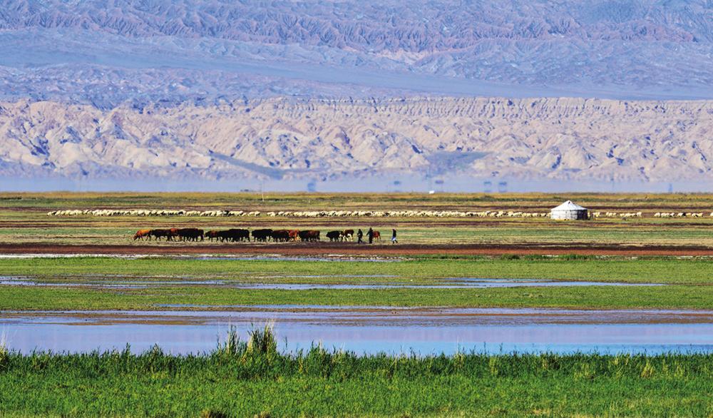 南昆仑、北祁连,八百里瀚海潮涌澎湃,独特的地理环境造就了这里除海洋以外的山川、河流、湖泊、戈壁、草原、森林、雪山、湿地、峡谷等全部自然风貌,特有的高原生态系统在涵养水源、防风固沙、调节气候、维护生物多样性等方面发挥着特殊而重要的功能,生态地位十分重要。近年来,海西州认真践行习近平生态文明思想,坚持生态保护优先,正确处理高质量发展和高水平保护的关系,统筹推进山水林田湖草沙一体化保护和系统治理,全面建立河湖长制、林草长制工作体系,生态管护员网格化管理实现全覆盖。深入打好蓝天、碧水、净土保卫战,大力实施国土绿化提升行动,实现了由“沙进人退”到“绿进沙退”的历史性变革。同时,积极参与国家公园示范省建设,加强自然生态系统的保护,雪豹、棕熊、野牦牛、黑颈鹤等珍稀野生动物数量不断增加,生物多样性日益丰富,处处呈现出人与自然和谐共生的美好画卷。