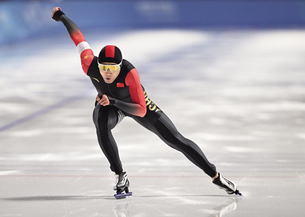 2月10日,高亭宇在比赛中。 当日,在哈尔滨举行的第九届亚冬会速度滑冰男子500米比赛中,中国选手高亭宇夺得冠军。 新华社记者 黄博涵 摄