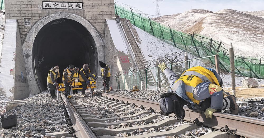 2月7日,记者驱车从海西州格尔木市一路南行,辗转跋涉三个多小时,到达中国铁路青藏集团有限公司格尔木工务段望昆线路车间,下车后四下环顾,昆仑山脉白雪覆盖,寒风像刀片一样刮过脸颊,迎风行走着实难受。