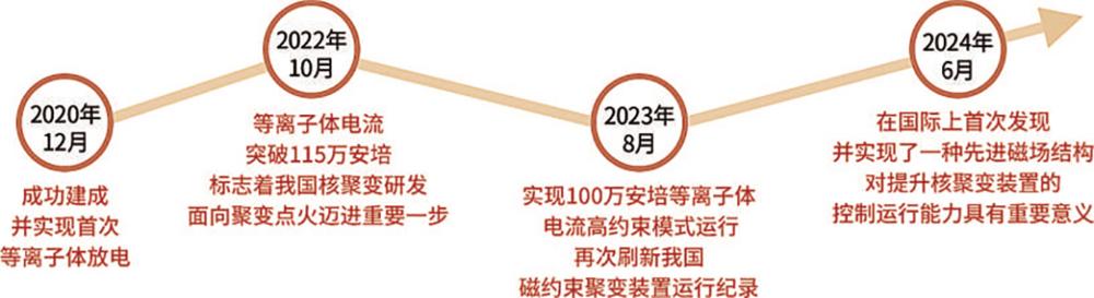 近年来,为开展“稳态自持燃烧”问题的研究,国际上各大装置实验向着更高参数迈进。我国的中国环流系列、东方超环等可控核聚变装置运行不断取得突破,如国内当前规模最大、参数能力最高的中国环流三号首次实现100万安培等离子体电流高约束模运行,创造我国磁约束聚变装置运行纪录。2023年在欧盟与日本合建的当前规模最大托卡马克JT—60SA上也实现了100万安培等离子体放电。2025年1月,东方超环创造了1066秒的高约束模等离子体运行纪录。
