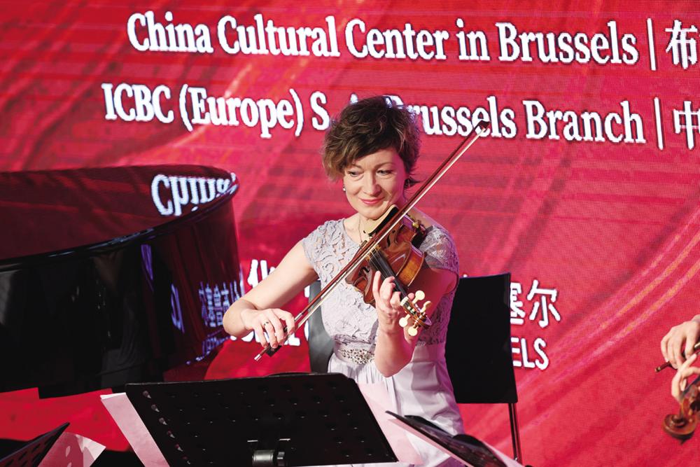 2月15日,艺术家在比利时布鲁塞尔中国文化中心新春音乐会上演奏。 当日,比利时布鲁塞尔中国文化中心举行2025年新春音乐会。音乐会上,中外艺术家为观众献上《春节序曲》《彩云追月》《第二圆舞曲》《父亲的草原母亲的河》等作品,展现了中西音乐的独特魅力。新华社记者 赵丁喆 摄