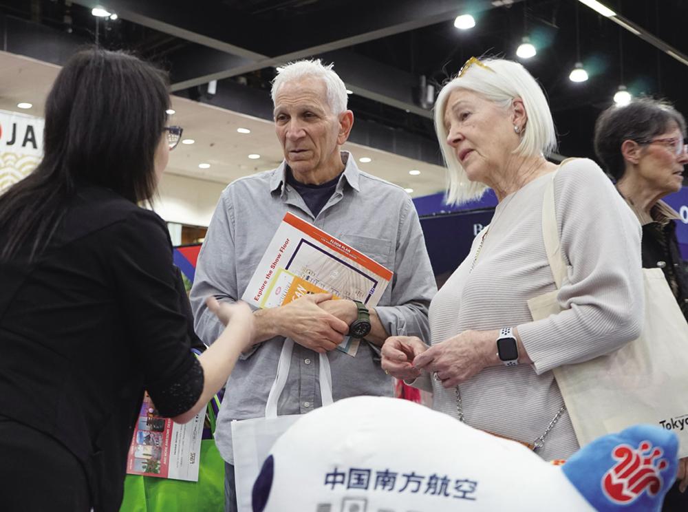 2月22日,人们在美国洛杉矶旅游展上参观中国展台。 美国规模最大的旅游展洛杉矶旅游展2月23日在洛杉矶会展中心闭幕。在为期两天的展会上,中国展台以春节文化和冰雪旅游为主题,为美国游客呈现了中国丰富的文化遗产和多样化冬季旅游体验。新华社发(曾慧 摄)