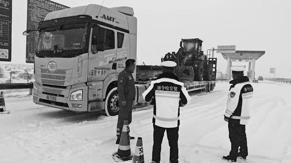 近日,德令哈地区持续降雪,一定程度上影响市民出行,海西州公安局交警支队迅速行动,组织全州公安交管部门快速转入应对勤务模式。 在现场,交警们不畏严寒,坚守岗位,与交通运输、应急管理、气象、公路养护等部门紧密协作,积极引导车辆有序通行,通过警车带道等方式,确保车辆减速慢行。同时,高效统筹做好交通管控与除雪融冰有序衔接,铲雪车等除雪设备在交警的指挥下紧张作业,全力保障道路交通平稳有序,为市民安全出行保驾护航。本报记者 张萍 摄影报道