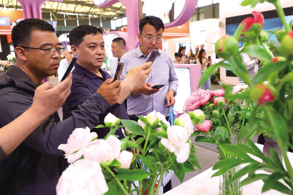 4月10日,参观者在拍摄芍药花新品种。 当日,第27届中国国际花卉园艺展览会在上海新国际博览中心开幕。来自近30个国家和地区的约700家企业参展,在园林机械工具、温室设施、智能灌溉系统等领域展示行业新技术和发展新趋势。 新华社记者 方喆 摄