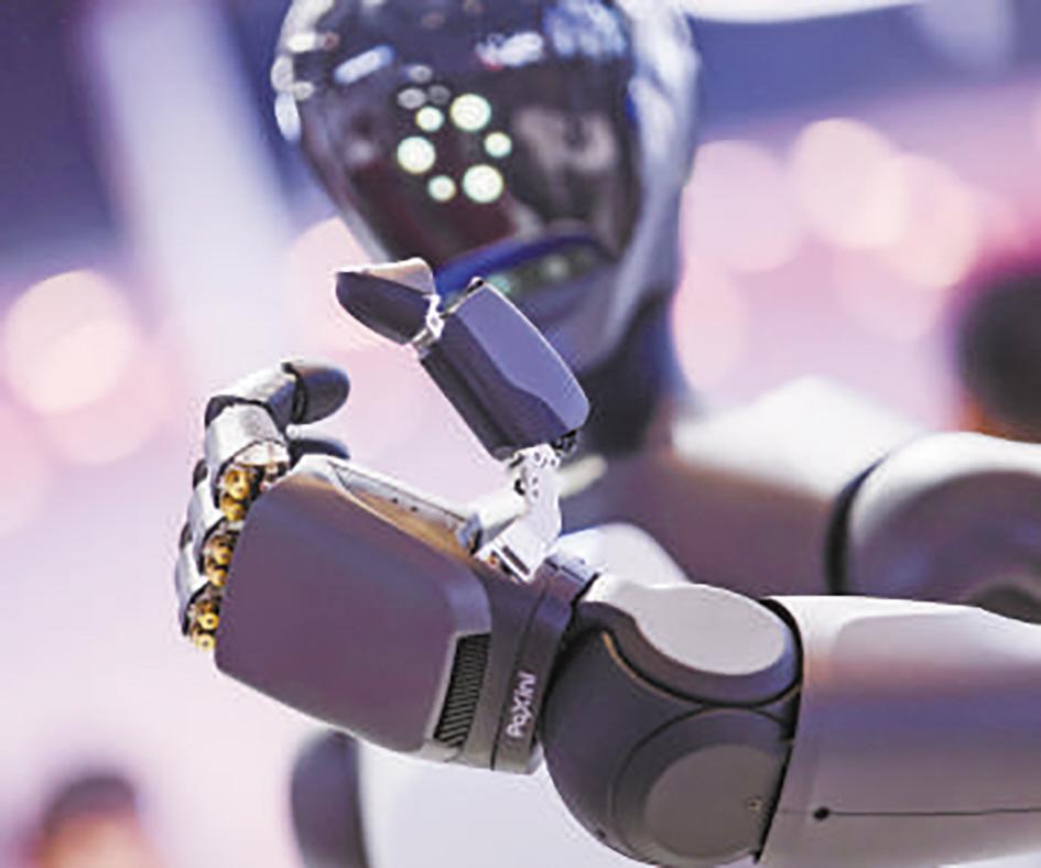具身智能机器人在展示仿生灵巧手。 资料图片