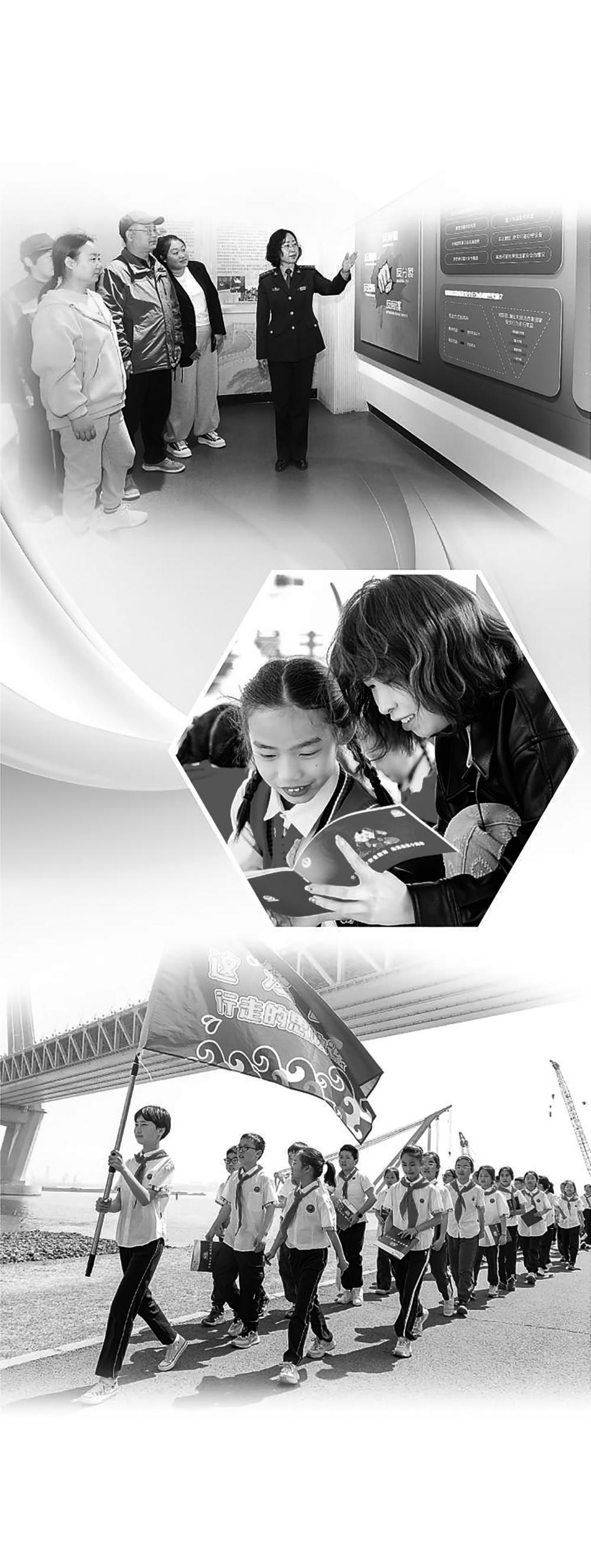 图①:在西柏坡国家安全教育馆,讲解员正为观众进行讲解。 人民日报记者 梁子栋 摄 图②:在天津“国安号”主题游船上,缘诚小学老师为学生讲解国家安全知识。 人民日报记者 潘立峰 摄 图③:江苏常州新北区罗溪中心小学学生开展国家安全主题行走的思政课活动。 人民日报记者 杨嘉文 摄
