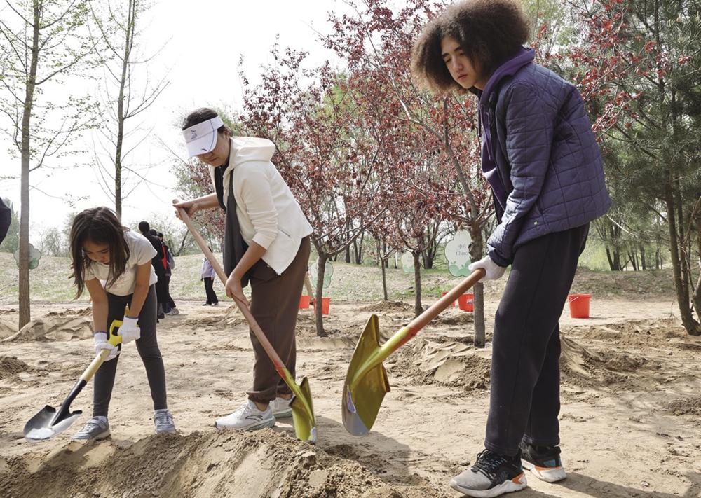 4月20日,嘉宾在北京参加上合大家庭青少年友谊林植树活动。 当日,为增进上海合作组织大家庭民心相通和青少年友谊,践行可持续发展理念,上海合作组织睦邻友好合作委员会、上海合作组织秘书处和全国绿化委员会在北京共同举办“上合大家庭青少年友谊林植树活动”。上合组织国家青少年齐聚一堂,以青春之姿播撒绿色希望,用团结协作浇灌友谊之林,共同构建可持续发展的上合组织绿色家园。 新华社记者 张玉薇 摄