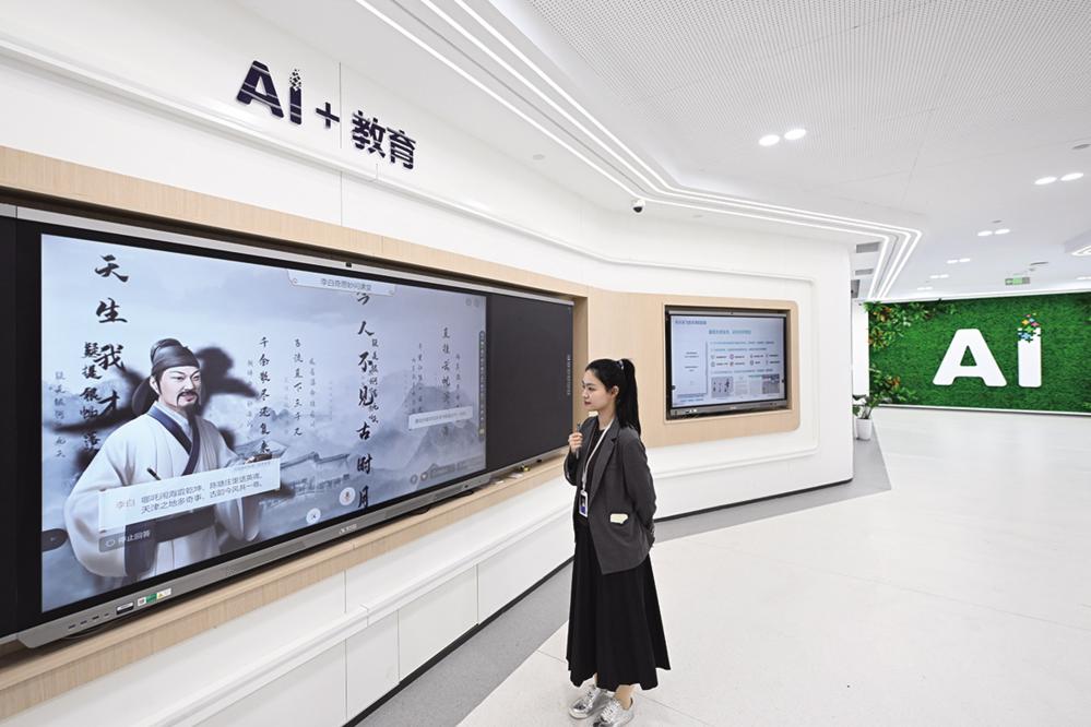 在科大讯飞天津公司,工作人员展示用于教育领域的AI产品。 近年来,天津新八大里数字经济产业主题园区聚焦数字经济的不同应用领域,深化数产融合,集聚一批数字要素驱动的特色企业,推广数字化、智能化场景,为区域经济高质量发展注入数字动能。 新华社记者 孙凡越 摄