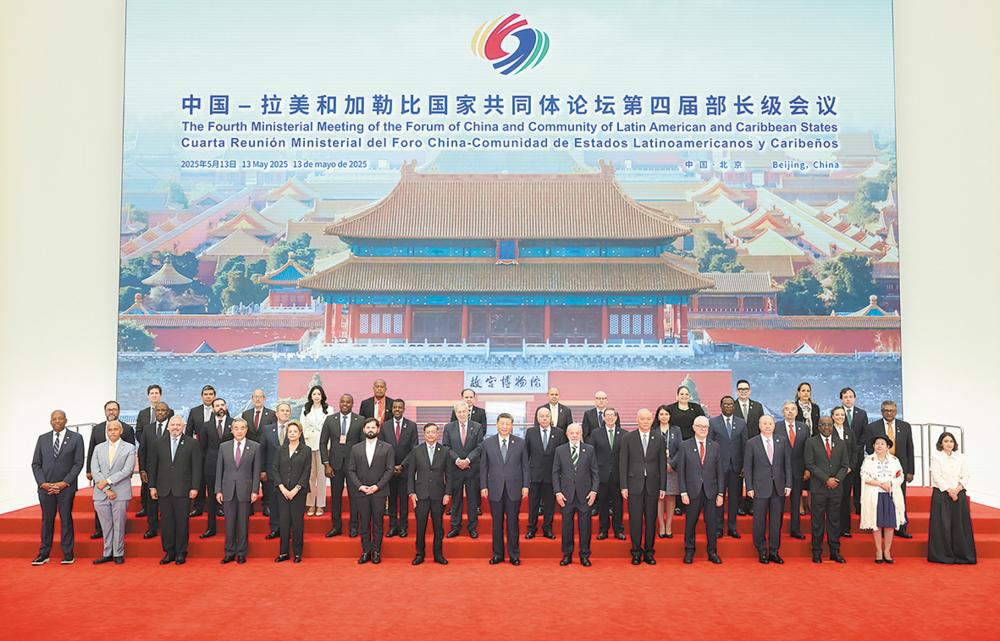 5月13日上午,国家主席习近平在北京国家会议中心出席中国——拉美和加勒比国家共同体论坛第四届部长级会议开幕式并发表主旨讲话。这是习近平同与会嘉宾集体合影。 新华社记者 丁海涛 摄