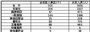 在住宿和餐饮业企业法人单位中,住宿业占67.5%,餐饮业占32.5%。在住宿和餐饮业企业法人单位从业人员中,住宿业占76.7%,餐饮业占23.3%(详见表4-7)。