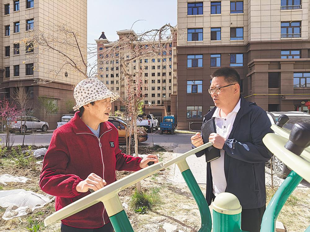 “是啊,搬到楼房了,我们每天都出来锻炼。”