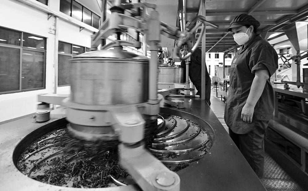 6月7日,工人在海南省农垦五指山茶业集团股份有限公司保亭金江五指山分公司茶厂加工茶叶。 海南大叶茶是海南省中部山区特有的茶种,在2024年被证实和发现是一种新的山茶属物种。目前,五指山、保亭、白沙等市县不断扩大种植规模,将茶产业作为巩固脱贫攻坚和推进乡村振兴的重要抓手,把绿叶变成百姓致富“黄金叶”。 新华社记者 郭程 摄