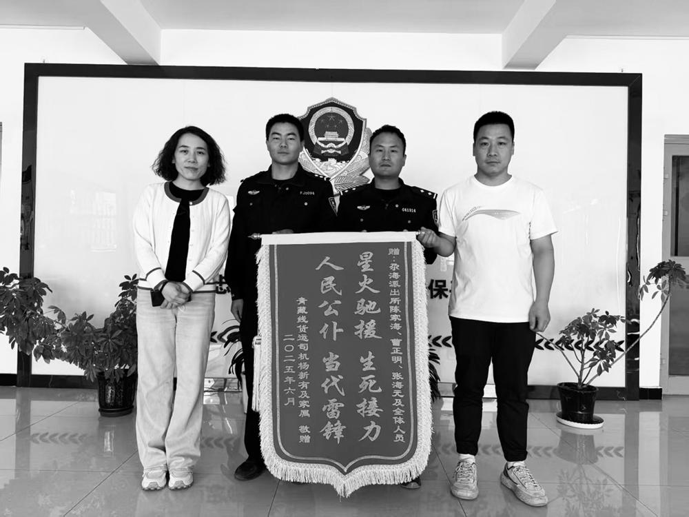 6月10日下午,司机家属满怀感激地来到尕海派出所,将一面绣有“星火驰援 生死接力 人民公仆 当代雷锋”的锦旗送到民辅警手中。家属激动地说:“要不是你们警察同志,我丈夫可能就没救了,太感谢你们了!”