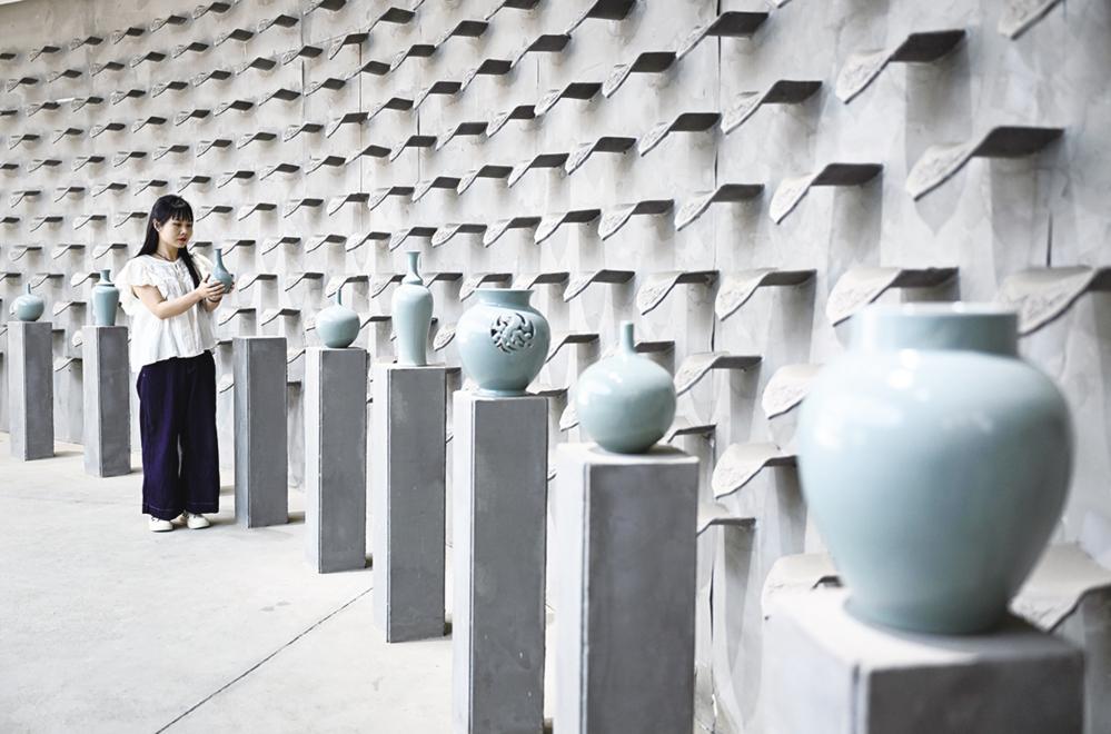 ← 宝丰县一家汝瓷企业的工作人员在整理展厅内的汝瓷产品。 汝瓷为宋代五大名窑之首,以“雨过天青云破处”的清雅釉色闻名,是温润如玉的瓷中瑰宝。北宋末年技艺失传,传世品极少。河南省宝丰县是清凉寺汝官窑遗址所在地。近年来,当地汝瓷烧制技艺不断获得突破,汝瓷产业也取得了长足进步。 如今,宝丰县拥有汝瓷烧制技艺代表性传承人近百人,汝瓷生产企业及作坊、研发机构近200家,从业人员5000多人,汝瓷产品种类达5000余种,年产量1000多万件(套),年产值达6.8亿元。 新华社记者 李嘉南 摄