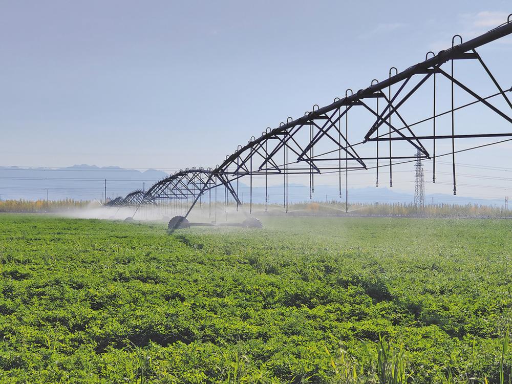 大型自走式节水喷灌机进行喷灌浇水。企业供图