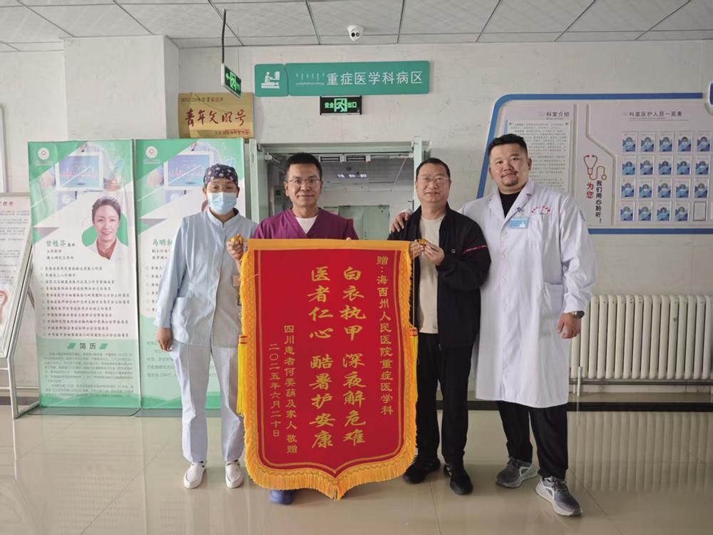 当天下午,记者跟随刘志宏来到海西州人民医院,将一面写着“白衣执甲 深夜解危难 医者仁心 酷暑护安康”的锦旗,郑重送到医护人员手中。这面锦旗背后,藏着一场惊心动魄的生死救援,更承载着陌生人之间真挚的善意与温暖。