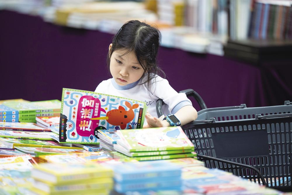 7月4日,小朋友在第二十八届澳门书市嘉年华上阅读。 新华社发(张金加 摄)
