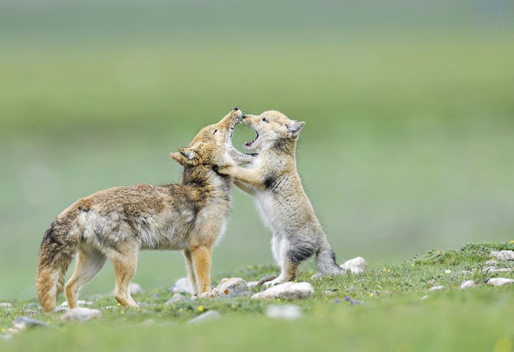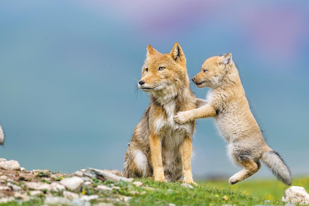 藏狐,国家二级重点保护动物,是青藏高原特有物种,主要分布于我国青海、西藏、甘肃、新疆与四川西部等地,常活动于草地灌丛、亚高山草甸和高山草甸中。藏狐作为青藏高原特有物种,是生态系统的重要一环,其种群数量变化直接反映区域生态健康状况,藏狐家庭活动场景,正印证了高原生态持续向好的良好态势。