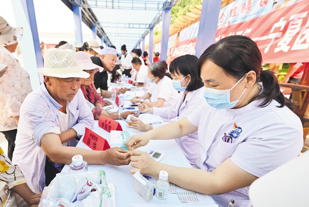 7月23日,卫生部门志愿者在活动现场为居民提供诊疗服务。 当日,中央宣传部和宁夏回族自治区党委、政府联合主办的2025年全国文化科技卫生“三下乡”集中示范活动在宁夏青铜峡市举行。 集中示范活动当天,来自宣传、文化、科技、卫生、教育、农业、司法等方面的专家和志愿者,在青铜峡市峡口镇综合文化站广场,为当地农民群众提供了政策宣讲、文艺演出、科学普及、医疗义诊、农技推广、法律咨询等服务。他们还将走村入户,把文化产品、农业服务、法律知识等送到农民群众身边。 新华社记者 王鹏 摄